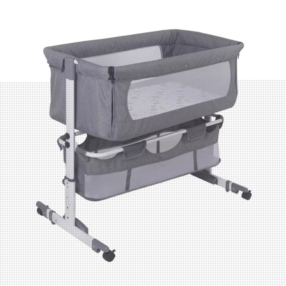 Baby bed, adjustable height, with fastening strap, mosquito net, wheels